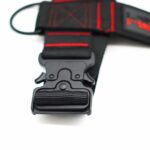 Heavy duty Cobra Clips, fully adjustable, locking clips on adjusters, elasticated protectors for clips, finished in black with red seam stitching.